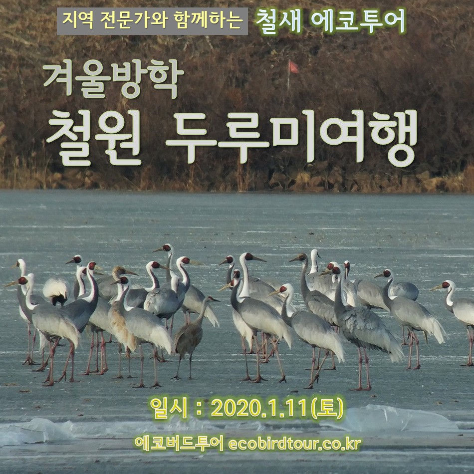 에코버드투어 탐조생태관광 단기 인턴십 모집공고 인턴 근무기간 : 2020.2.25~3.2 근무 예정지 : 전국 (서울, 철원, 강릉, 속초, 서산, 군산 등 주요 철새도래지) 응시원서 : 에코버드투어 홈페이지에서 다운 접수기간 : 2020. 1. 6.(월) - 1. 14.(화) 18:00 접수방법 : 지원서를 다운 받아 기입하여 이메일로 제출 (ecobirdtour@naver.com) 선발 인원 : 1명 근로조건 급여 : 회사내규에 따름 근무형태 : 해외여행객과 함께 동행하며 여행인솔자를 지원함 (숙식제공) 학력 : 관계없음 전공 : 관계없음 나이 : 관계없음 전형방법 : 서류, 면접 면접 예상 일정 : 1월 29일 (서류 합격자에 개별 통지) 인턴근무 기간에 앞서 선발자와 사전 오리엔테이션 일정 예정