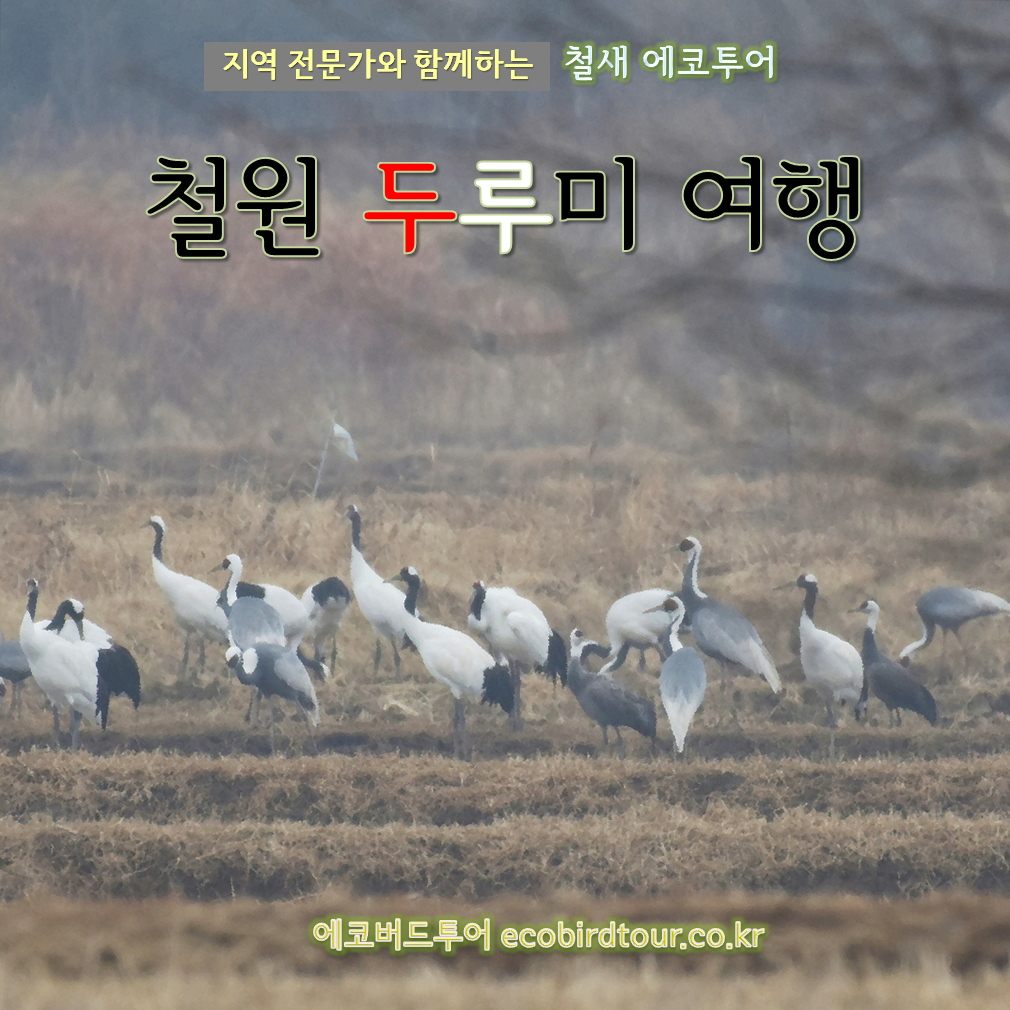 해맞이 철원 두루미 여행 (1박2일) 두루미를 못 본 사람은 있어도 한번만 본 사람은 없다! 두루미와 함께 새해를 시작하는 의미있는 여행을 준비했습니다. 여행지 : 파주 ~ 연천 ~ 철원 날짜 : 2021.12.31(금) ~ 2022.1.1(토) 초빙 안내자 : 철원지역 현지 두루미 전문가 모집인원 : 6~8명 참가비 : 250,000원 교통편 : 카풀 및 개별 이동 탐조 수준 : 초보~중급 * 두루미 보호 및 군사지역을 고려하여 이번 시즌 철원 여행은 소수로만 진행합니다. 일정표 1일차 09:00 서울 출발 09:45 파주 산남습지 탐조 10:30 파주 공릉천 탐조 12:00 점심 식사 13:30 파주 장산 전망대 탐조 15:30 철원 학저수지 탐조 18:00 저녁 식사 19:30 자유시간 2일차 06..