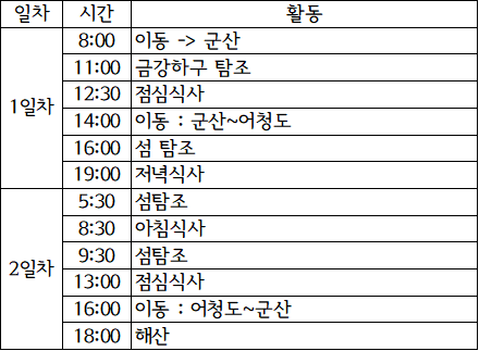 • 포함사항 : 숙식, 교통, 쌍안경대여
