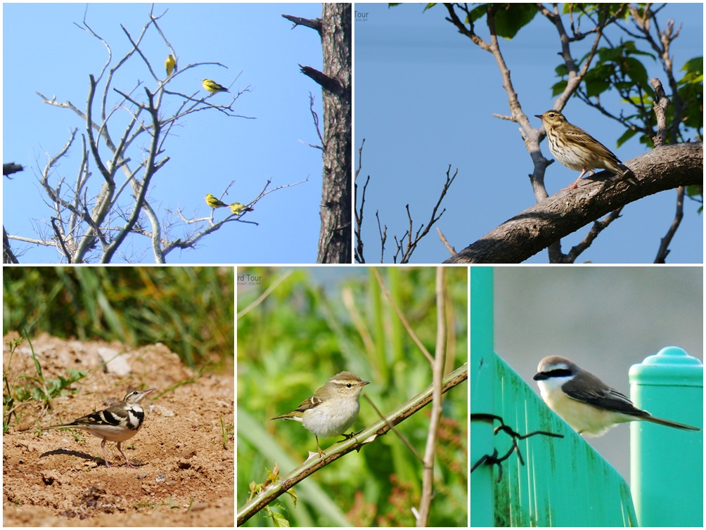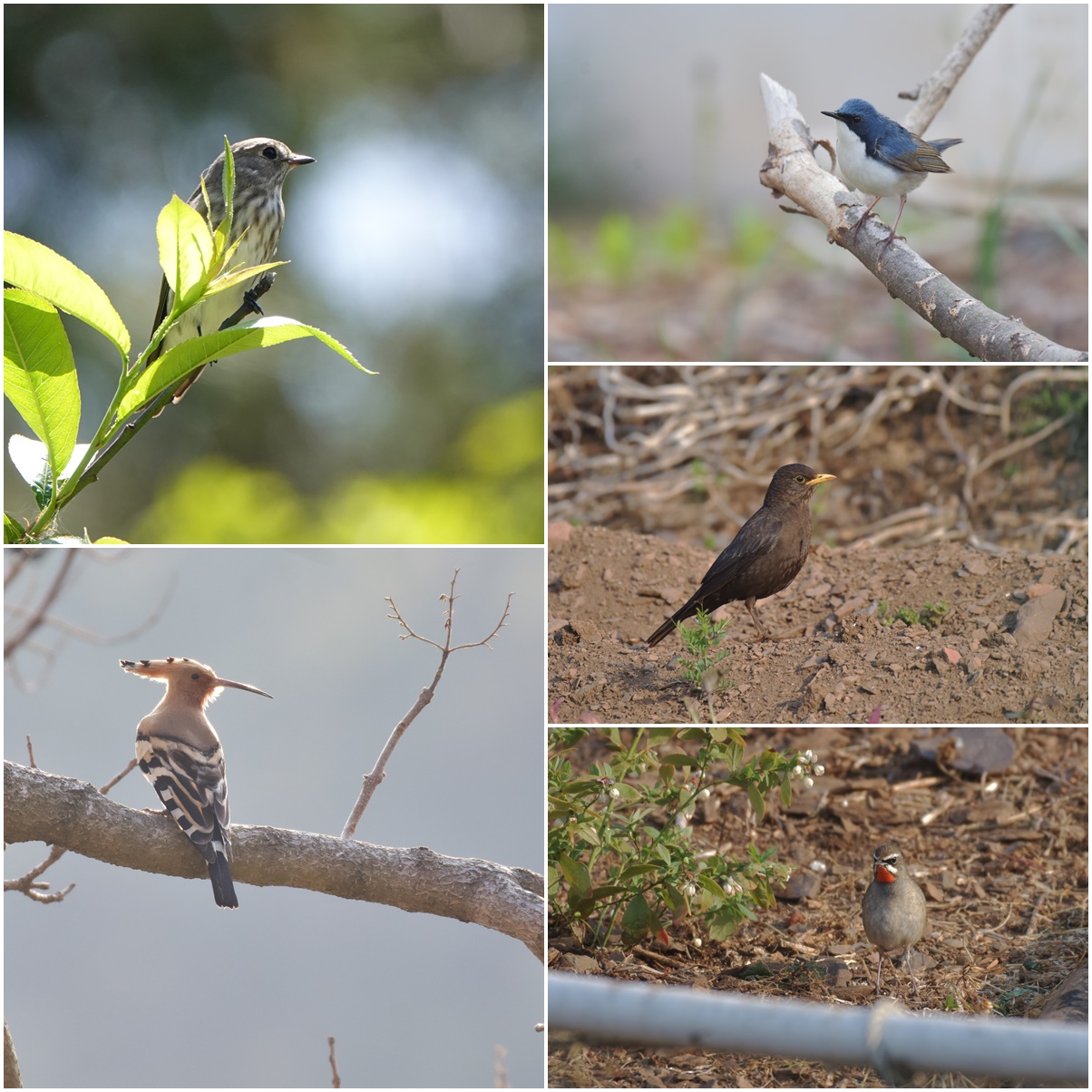 • 이동성 산새류(멧새류, 솔딱새류, 솔새류, 밭종다리류, 할미새류, 지빠귀류 등)