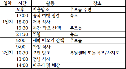 - 포함사항 : 숙식, 교통, 쌍안경대여