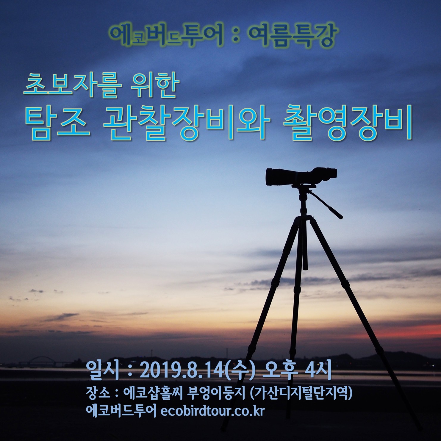 인터넷을 뒤져도 딱하니 나오는 정보는 없고, 고가의 장비를 무턱대로 살 수도 없지요. 그래서 초보자와 입문자를 위한 탐조 장비의 합리적인 선택에 도움을 드리고자 여름특강을 준비했습니다.