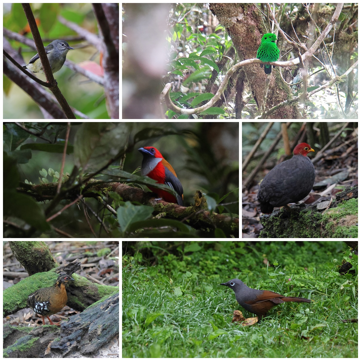 관찰 예상 조류 : Whitehead’s Trogon, Whitehead’s Broadbill, Whitehead’s Spiderhunter, Fruithunter, Bare-headed Laughingthrush, Everett’s Thrush, Bornean Green magpie, Bornean Stubtail, Mountain Wren-babbler, Pale-faced Bulbul, Eye-browed Jungle flycatcher, Bornean Whistler, Bornean Treepie, Borean Forktail, Chestnut-crested Yuhina and some resident birds like Sunda Owlet, Sunda Laughingthrush, Temminck’s Babbler, Mountain Leaf Warbler, Mountain Tailorbird, Yellow-breasted Warbler, Temminck’s Sunbird, Sunda Cuckooshrike, Aberrant Bush Warbler, Grey-chinned Minivet, Indigo Flycatcher, Hairy-crested Drongo 등