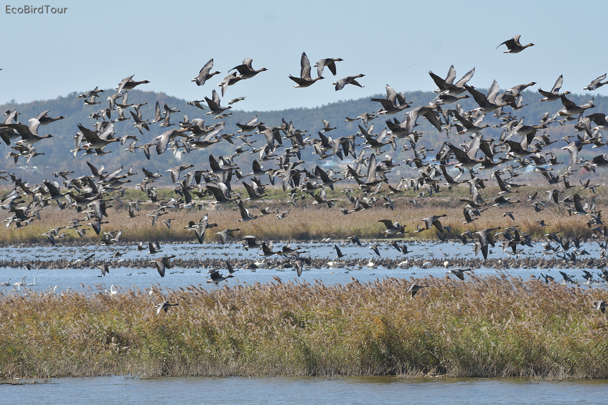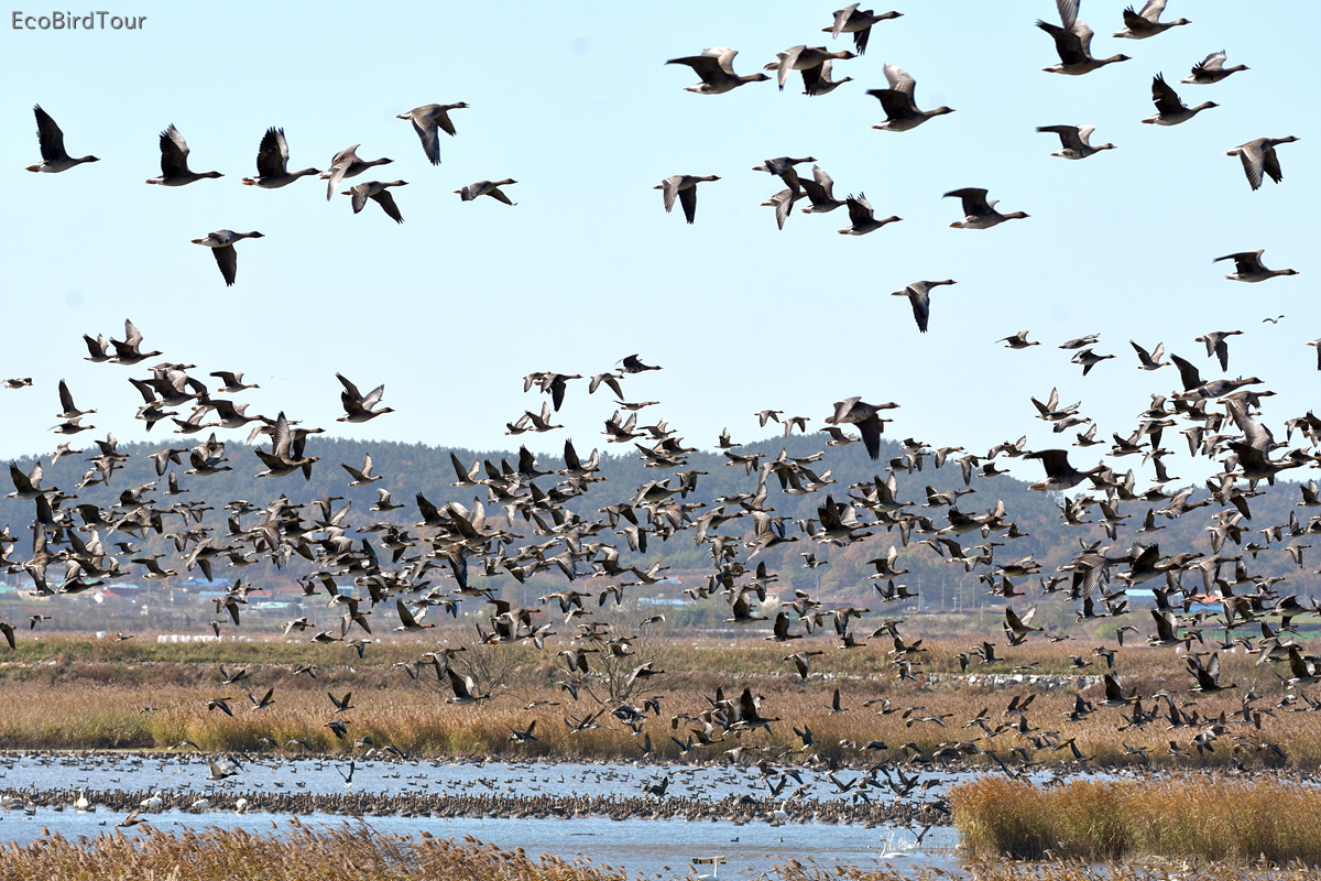 천수만은 잘 알려진 동아시아 오리/기러기류와 맹금류의 아주 중요한 국제적인 서식지입니다. 추수를 마친 드넓은 들판에서 다양한 겨울철새를 찾아보는 초보자를 위한 탐조여행입니다. 운이 좋다면 마지막 이동을 하며 천수만을 들리는 흑두루미와의 만남을 기대해 볼 수 있습니다.