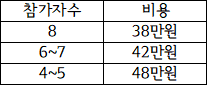 - 참가비 : 38만원~ (상세 비용은 아래 참조)