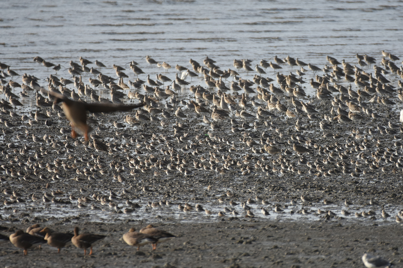 도요물떼새들을 일컬어 SUPER BIRD, 비행천재라고 합니다. 지구의 남쪽과 북쪽을 오가는 대이동을 하기 때문입니다. 이동 거리는 수천에서 수만 Km에 이르고 밤낮없이 1주일을 날기도 합니다. 4월의 모든 서해안은 이런 도요물떼새들이 도착하여 쉬고 먹으며 기운을 추스르는 중간기착지입니다.
