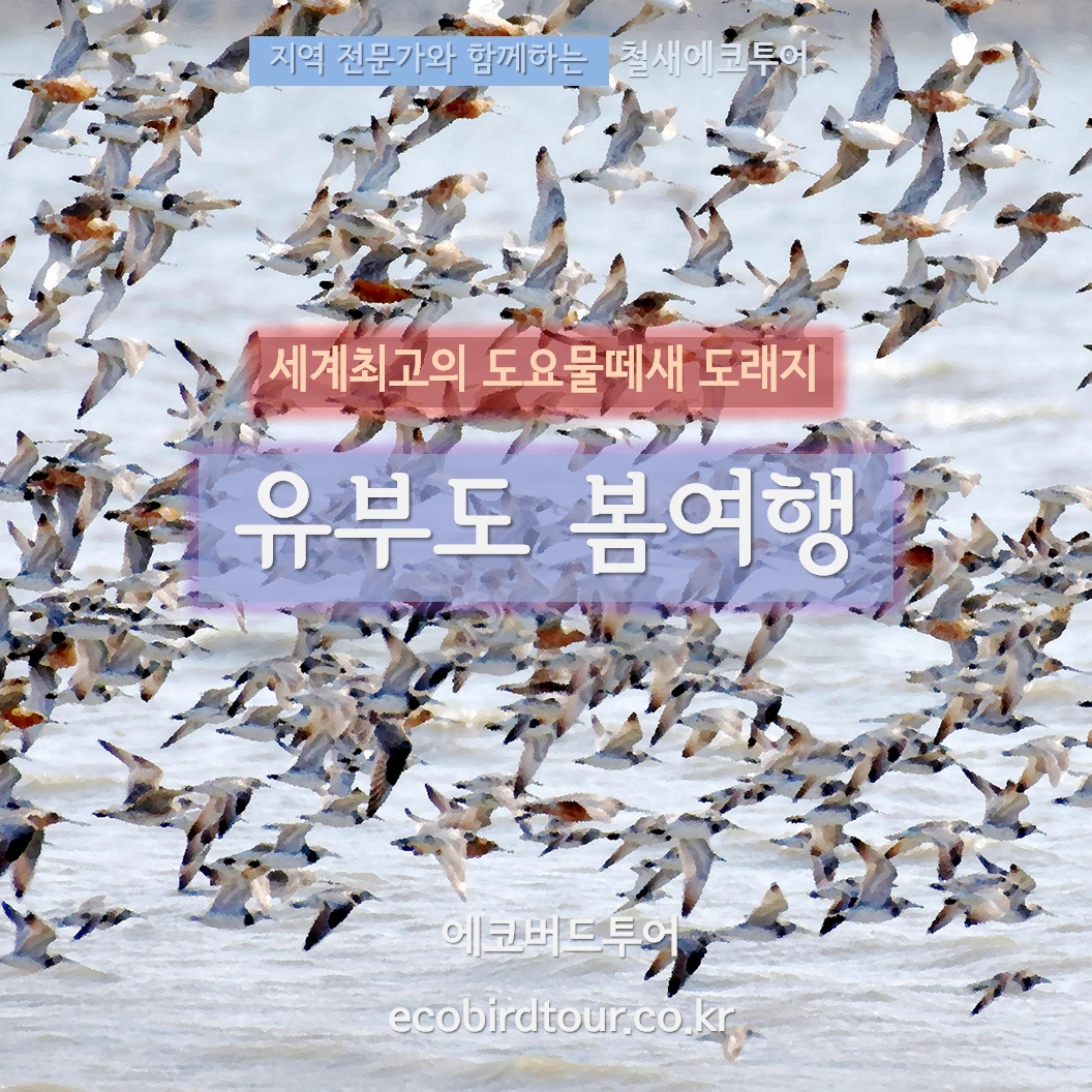 유부도+금강하구 초봄여행 (당일+1박2일 복합구성)세계적인 도요물떼새의 천국, 유부도! 신청 마감되었습니다. 대기자 등록을 원하면 신청서를 제출해주세요. 유부도의 도요물떼새는 전세계적인 보물입니다.수만 마리 도요물떼새와의 만남을 통해 자연과 내가 하나되는 순간을 경험할 수 있는 매우 특별한 곳입니다.  3월 30 유부도 + 3월31일 금강하구 투어로 진행합니다.유부도 여행이 당일 여행으로만 진행되는 경우, 금강하구를 둘러볼 시간이 없어서 아쉬움이 있는 편입니다. 2일차에 금강하구 탐조를 더하여 1박2일 여행을 준비하였으니, 여유있게 금강하구권의 도요물떼새들을 만나보고 싶은 분들은 1박2일 여행을 신청해주세요.봄에 넓적부리도요를 유부도에서 만나기는 어렵습니다. 따라서 넓적부리도요를 주요 목적으로 한다면 가..